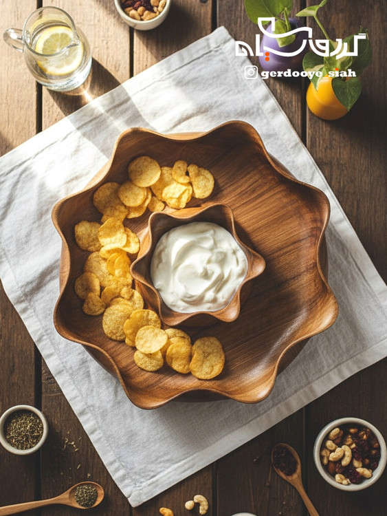 مزهخوری چوبی مدل «بَزم» یک انتخاب اصیل و دستساز برای افرادی است که به زیبایی، کیفیت و سبک زندگی طبیعی اهمیت میدهند. این محصول از چوب گردوی طبیعی و یکتکه ساخته شده و کاملاً دستتراش است؛ بنابراین هر قطعه ظاهر و نقش مخصوص خودش را دارد و مانند یک اثر هنری کوچک روی میز شما میدرخشد.