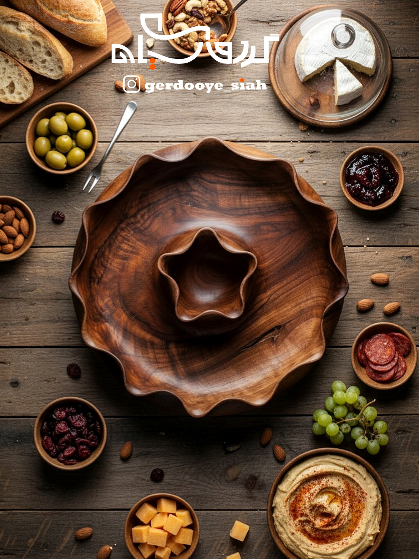 مزه خوری چوبی مدل بَزم با چوب گردو